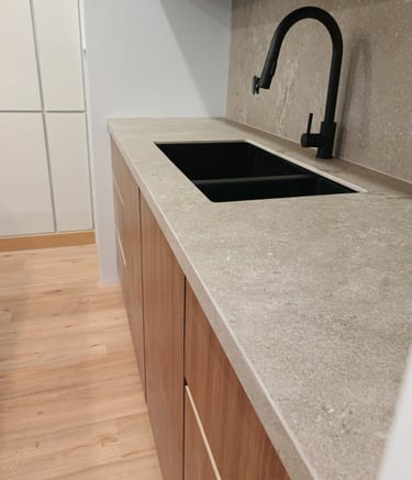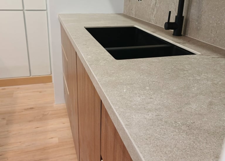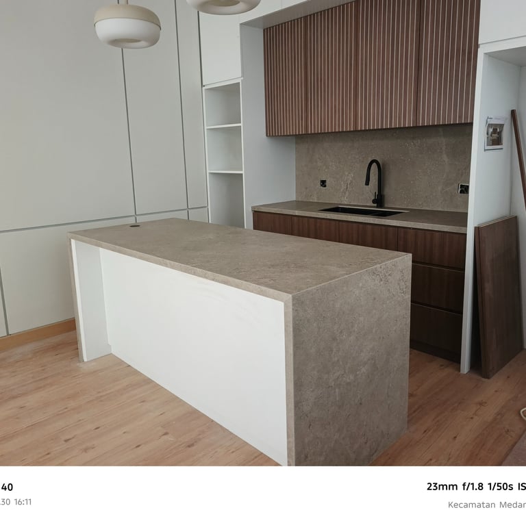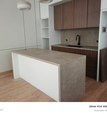 Meja dapur dari sinteredstone sangat kokoh dan desainnya elegan, sesuai harapan.