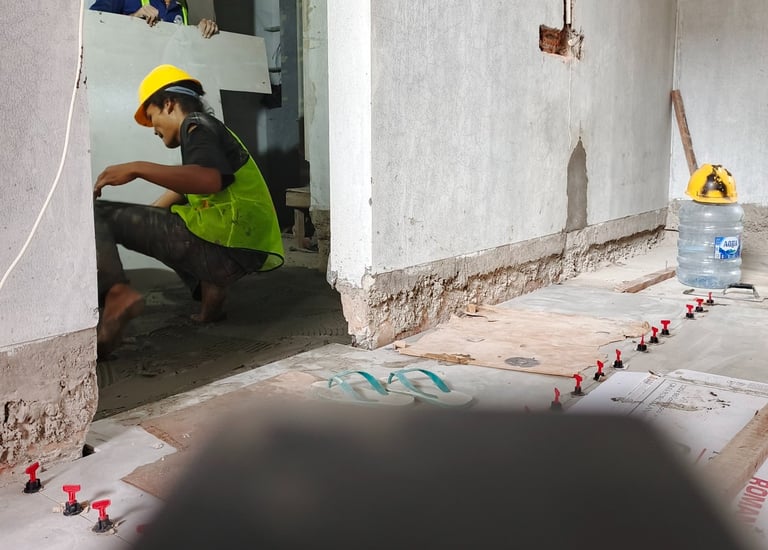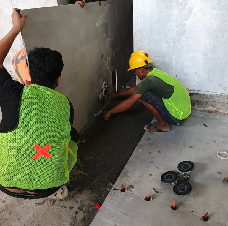 Pemasangan lantai dan dinding sangat rapi, hasilnya tahan lama dan memuaskan.